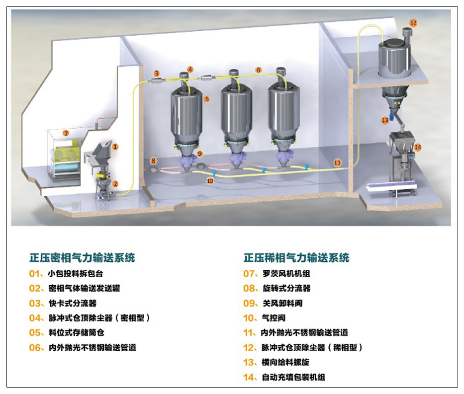 氣力輸送又稱氣流輸送,利用氣流的能量,在密閉管道內沿氣流方向輸送顆粒狀物料,是流態化技術的一種具體應用。氣力輸送裝置的結構簡單,操作方便,可作水平的、垂直的或傾斜方向的輸送,在輸送過程中還可同時進行物料的加熱、冷卻、干燥和氣流分級等物理操作或某些化學操作。